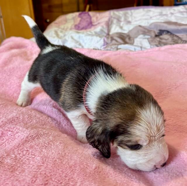 Es sind 2 Hündinnen (tricolor) und 2 Rüden (tricolor)